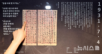 ソウル市中区の李会榮記念館で11日午後、「李会榮記念館モグンチプ移転開館式」が開かれ、訪れた人々が初公開の友堂・李会榮(イ・フェヨン)の肉筆の手紙を見て回っている。