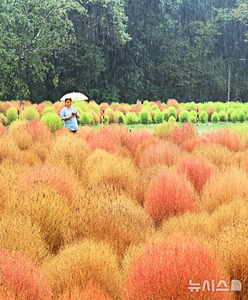 【NEWSIS】韓国各地で雨天となった12日、京畿道水原市勧善区の塔洞市民農場ではホウキグサが赤く色づいていた。