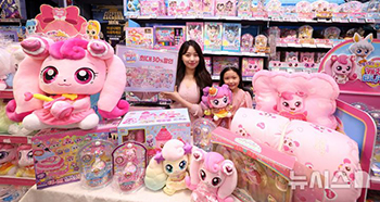 【NEWSIS】ソウル市中区の大手スーパー「Eマート清渓店」で12日、「キャッチ!ティニピン」のキャラクター商品を紹介するコンパニオンの様子。 Eマートでは、今月22日まで「セコムタルコム ティニピ..