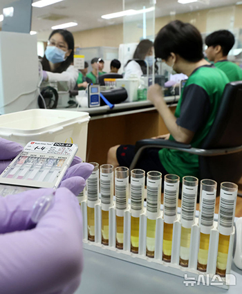 最近、麻薬や大麻、向精神薬などを利用した犯罪やその誤用・乱用が深刻な社会問題になっている中、仁川市弥鄒忽区の仁川兵務支庁診断検査医学室で10日、臨床検査技師が入営対象者たちの尿を検体として、簡易検査..