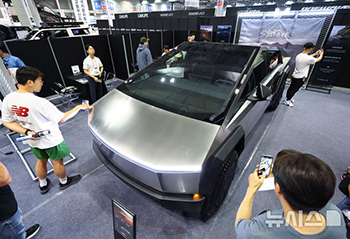 【NEWSIS】6日、京畿道高陽市のKINTEXで開幕した2024オートサロンウイークを訪れた人々が、テスラのサイバートラックを見て回る様子。