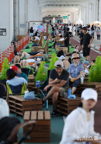 【NEWSIS】1日、ソウル市瑞草区の潜水橋から盤浦漢江公園にかけての一帯で、「2024車のない潜水橋てくてく祭り」を楽しむ参加者たち。