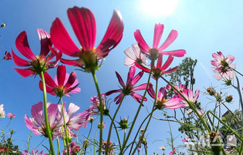二十四節季の一つ「処暑」まであと四日と迫った19日午前、済州市竜潭2洞の街角では、秋の花であるコスモスが花開き、視線を引きつけていた。韓国気象庁によると、台風9号(アジア名:ジョンダリ)の北上に重なっ..