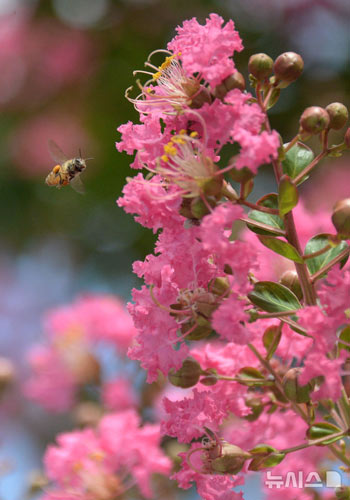 【NEWSIS】真夏の天気が続いている1日、全羅北道全州市の全州韓屋村一帯ではサルスベリが開花していた。