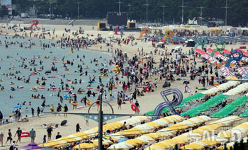 【NEWSIS】夏休みシーズン真っただ中の4日、釜山市海雲台区の海雲台海水浴場は大勢の市民や観光客でにぎわった。