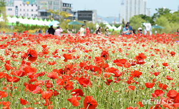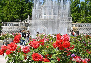 【NEWSIS】エバーランド・バラ祭りがあすに迫った16日、京畿道竜仁市のエバーランド・ローズガーデンでは、訪れた人々が大きく咲いたバラの花を見て回っていた。 720品種、300万株のバラが満開を迎..
