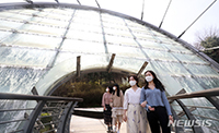 ソウル市瑞草区にある芸術の殿堂の近くで1日、アクアアート陸橋ウォータースクリーンが稼働していた。