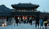 景福宮(ソウル市鍾路区)夜間開放初日に当たる1日午後、景福宮を訪れた市民たちが勤政殿を見て回った。文化財庁宮陵遺跡本部景福宮管理所によると、この日から5月31日までの期間中、45日間にわたり夜間開放..