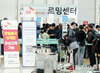 【NEWSIS】5月の連休が目前に迫った2日午前、仁川国際空港第1旅客ターミナル出発ロビーのSKテレコム・ローミングセンターで、ハッキング問題に伴うUSIM(ユーシム=携帯電話に差し込む、契約者情報..
