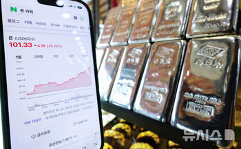 【NEWSIS】25日、ソウル市内のある貴金属店街に陳列されているシルバーバー(インゴット)。銀の価格は23日、先物・現物ともに史上初めて1オンス(約31.1g)当たり100ドルを突破した。