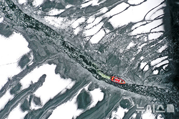 【NEWSIS】寒波が続いている26日、ソウル市江東区クァンナルの漢江沿いでは、119クァンナル水難救助隊の船が氷を割って出動路確保作業を行っていた。