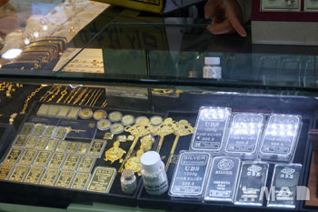 【NEWSIS】20日午後、ソウル市鍾路区の貴金属店にゴールドバーやシルバーバーなどの製品が陳列してある様子。米国東部時間基準で19日、国際金価格が、取引中に一時1オンス(約28.34グラム)あたり4..
