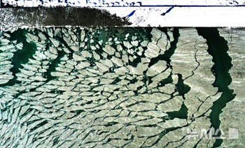 【NEWSIS】二十四節気の一つ「大寒」に当たる20日、京畿道華城市の宮坪港一帯で、海に氷が張っている様子。韓国気象庁によると、今週はずっと気温マイナス10度以下の寒波が続くものと予想されている。