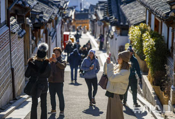 【NEWSIS】20日、ソウル市鍾路区の北村韓屋村を訪れた外国人旅行客が楽しいひとときを過ごしている様子。外国人の韓国に対する好感度は、2018年の調査依頼最も高い82.3%を示した。 「2025年..