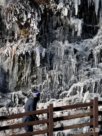【NEWSIS】二十四節気の一つで、最も寒い時期とされる「大寒」に当たる20日、大邱市達城区の宋海公園では散策路の傍らに巨大な氷壁が作られ、壮観をなしていた。
