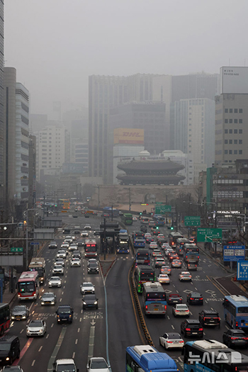 霧が立ち込めたソウル中心部 PM2.5濃度上昇