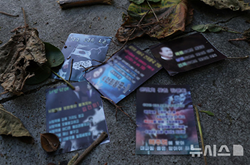 【NEWSIS】24日、ソウル市竜山区の大統領室庁舎に近いビルの駐車場に、北朝鮮が飛ばした「ゴミ風船」から落下したと思われるビラが散らばっている様子。
