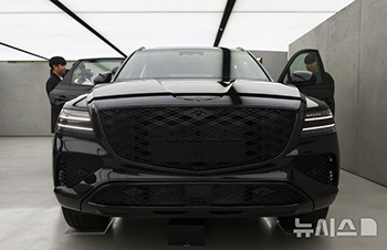 ソウル市江南区のジェネシス江南で24日、ジェネシスGV80およびGV80クーペ・ブラック・メディア・イベントが行われ、車両が展示されている様子。