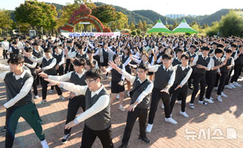 太和江国家庭園(蔚山市中区)の「出会いの広場」で23日午後、蔚山の大松高校の生徒たちが、「独島の日」を前にフラッシュモブを行った。
