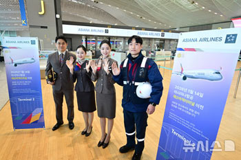 【NEWSIS】アシアナ航空と大韓航空の運航・客室・空港・整備関係者が14日、仁川国際空港第2ターミナルで、アシアナ航空第2ターミナル移転に合わせて記念撮影をしているところ。