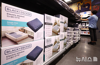 【NEWSIS】ソウル市内のある大手スーパーで16日、従業員が電気毛布やストーブなど防寒用品を整理している様子。 今年の冬は例年より強い寒波が予想される中、電気毛布やカイロなど防寒用品関連商品の販売..