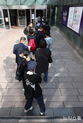 ソウル市鍾路区の教保文庫光化門店で11日午前、市民たちがノーベル文学賞を受賞した小説家・韓江(ハン・ガン)氏の本を購入するため、列をなしていた。