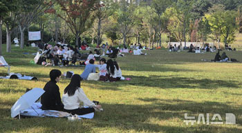 涼しい秋の天気が続いている12日、全羅北道全州市徳津区松川洞の洗兵公園では、訪れた市民がピクニックを楽しんでいた。