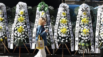 ミン・ヒジン元代表復帰要求期日まであと二日…HYBE前に並ぶ「謹弔花輪」