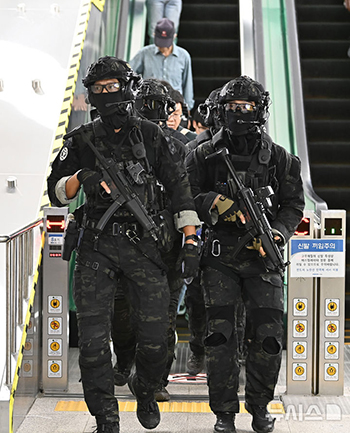 【NEWSIS】最近オンラインの匿名コミュニティーに「水仁盆唐線野塔駅で凶器を持って暴れる」という書き込みがあったことから、関係当局が非常対応態勢に入っている。写真は23日、京畿道城南市盆唐区の野塔駅..