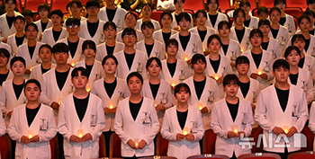 【NEWSIS】亜洲大学看護学部の学生たちが24日、京畿道水原市の同大学講堂で、「ナイチンゲール宣誓式」を行った。この宣誓式には選ばれた看護学部の学生72人が専門看護師として人間の生命を尊重し、看護..