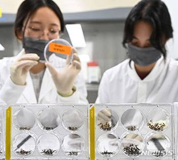 京畿道水原市勧善区の京畿道保健環境研究院で2日、採集した蚊を分類している研究員らの様子。疾病管理庁は先月29日、全羅南道莞島郡と済州地域で日本脳炎を媒介するコガタアカイエカが見つかったことに伴い、韓国..