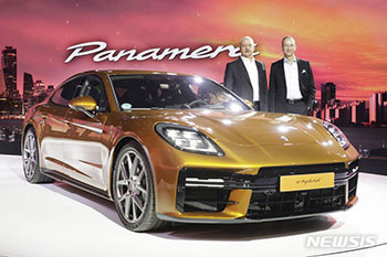 【NEWSIS】2日、ソウル市中区の新羅ホテルで、ポルシェ・コリアが高級スポーツセダンの新型「パナメーラ」韓国公式発売イベントを開催した。写真はホルガー・ゲアマン・ポルシェ・コリア代表=写真右=と、..