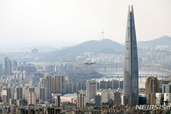冬季の大気汚染の原因を明らかにするため、国立環境科学院とアジア大気質共同調査(ASIA-AQ)を進めている米航空宇宙局(NASA)の観測機DC-8が26日、京畿道広州市の南漢山城から望むソウル上空を飛..