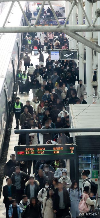 【NEWSIS】旧正月連休三日目の11日、帰京する人々で混雑するソウル駅のホーム。