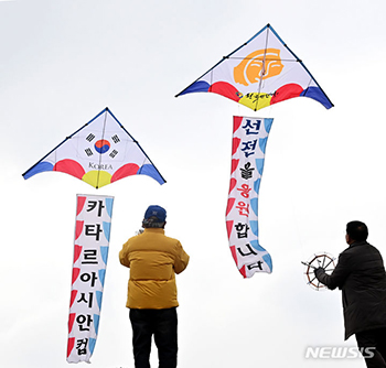 「凧揚げでサッカー韓国代表チームを応援します」