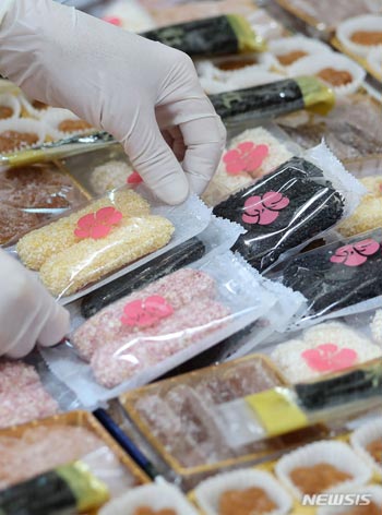 旧正月(今年は2月10日)の名節を控えた30日、大邱市東区百安洞の「パプコッ韓菓」では、押し寄せる注文をさばくため従業員が韓菓の包装作業を進めていた。