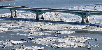 北極発の寒波が続いている25日、京畿道金浦市付近では、漢江に氷が張っていた。