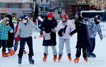 ソウル広場のスケート場を訪れた人の数が10万人を突破した23日、ソウル市中区のソウル広場スケート場を訪れた子どもたちが楽しいひとときを過ごしている様子。