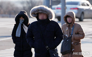 全国各地で寒波特別警報が発表された24日午前、ソウル市永登浦区の汝矣島乗り換えセンターを移動する市民たち。ソウルは同日の最低気温がマイナス12度を記録した。