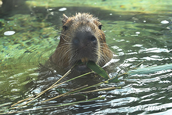 二十四節気の一つ「大寒」まであと二日と迫った18日、京畿道竜仁市のエバーランドでは、カピバラが温泉浴を楽しみながらえさを食べていた。カピバラは水を非常に好むので「水豚」という異名もある。