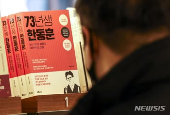 ソウル市鍾路区の大手書店「教保文庫」のベストセラー売り場に4日、『73年生まれの韓東勲』が並べてある様子。韓国初の韓東勲(ハン・ドンフン)分析書として知られる同書は、12月8日に出版され、韓国国内大手..