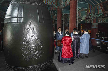 2024年初日となる1月1日午前、ソウル市鍾路区の普信閣で行われた除夜の鐘つきイベントが行われ、市民代表やグローバル・インフルエンサーたちが鐘をついた。