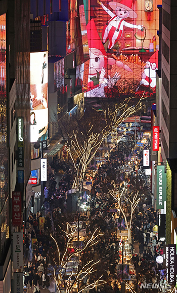 【NEWSIS】クリスマスイブの24日午後、人々でにぎわうソウル市中区の繁華街・明洞。
