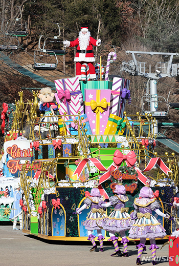 21日午前、京畿道竜仁市処仁区のエバーランドを訪れた人々の前で行われた「きらきら X-mas パレード」。