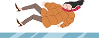 凍った道ではポケットから手を出し、普段より歩幅を小さくして歩こう。ヒールが高い靴を履いたり、厚すぎる服を着たりすると、バランスが取りにくくなる。