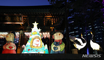 【NEWSIS】クリスマスまであと五日となった20日夜、ソウル市鍾路区の曹渓寺で、「2023クリスマスツリー灯ろう点灯式」が行われた。写真は柔らかな光を発するさまざまな形の灯ろう。
