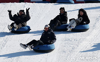 ソウル市広津区にあるトゥクソム漢江公園のそり遊び場で21日午前、「弱者との同行」と題するイベントが行われ、参加者たちがそり遊びを楽しんだ。