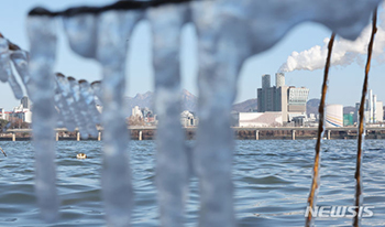 【NEWSIS】韓国に寒波が到来した17日、ソウル市永登浦区の汝矣島では、漢江沿いにつららができていた。
