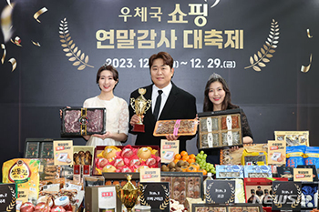 ソウル市中区のソウル中央郵便局で12日、お笑いタレントのムン・セユンとコンパニオンらが、郵便局ショッピング2023年年末感謝大祝祭をPRした。郵政事業本部は今月29日まで、全国の優れた農・水・畜産物..