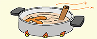 水が入った鍋にミカンの皮とシナモン・スティックを入れて弱火で10分ほど煮ると、家の中の気になるニオイがなくなる。オレンジやレモンの皮でもOKだ。
